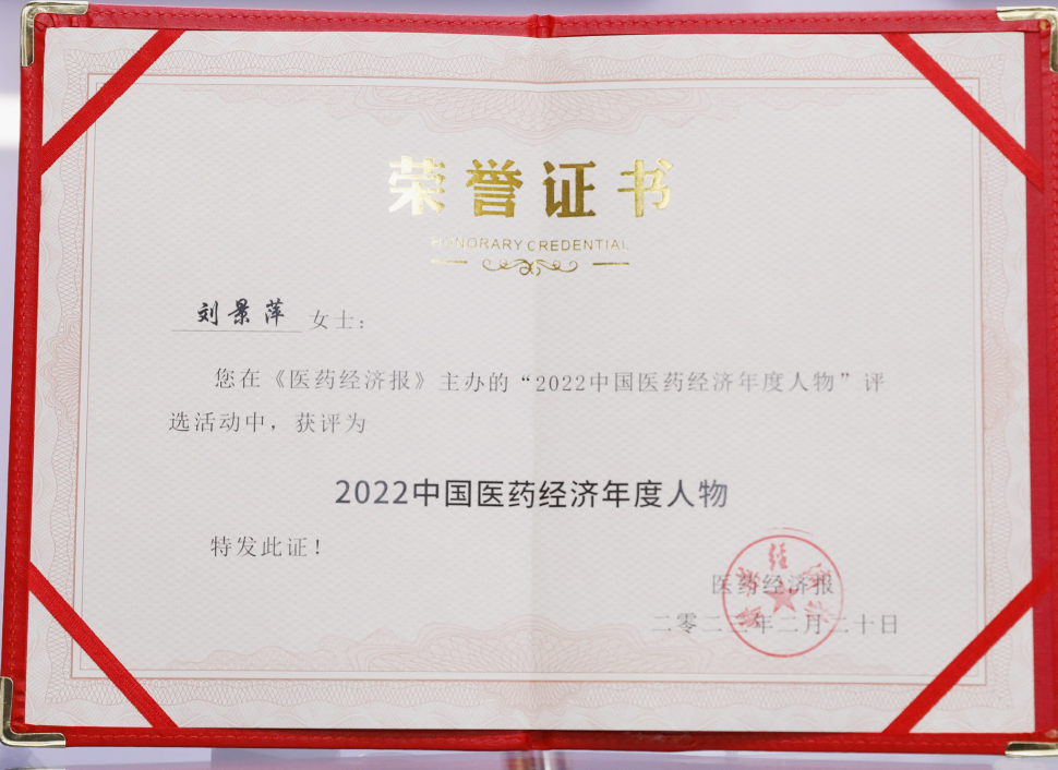 多彩联盟药业集团董事长刘景萍当选“2022中国医药经济年度人物”