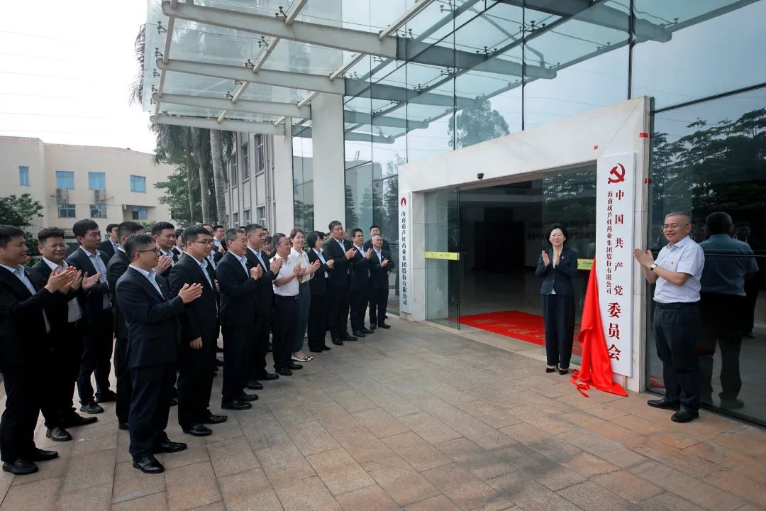 海口市高新区两新组织党委副书记傅爱萍宣读了《中共海口国家高新区非公有制经济组织和社会组织委员会关于同意成立中国共产党海南多彩联盟药业集团股份有限公司委员会的批复》。